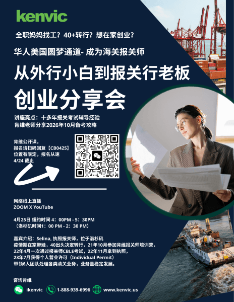 8 11 月, 2025Choosing Kenvic Training School was the best decision I’ve made in pursuing my career in customs brokerage! After completing Kenvic’s U.S. Customs Broker License Exam Prep Program and Import Customs… read more Clearance Workshop, I can confidently say that every instructor demonstrated exceptional professionalism and teaching expertise. As a complete beginner, I no longer feel intimidated by the complexities of customs clearance, thanks to their clear guidance and practical training. What truly stood out was Kenvic’s comprehensive career support. The school provided tailored resume optimization advice, job recommendations, and invaluable guidance that gave me, a newcomer to the field, both confidence and direction. I’m incredibly grateful to every instructor at Kenvic for their dedication and support. I highly recommend Kenvic Training School to anyone looking to excel in customs brokerage!