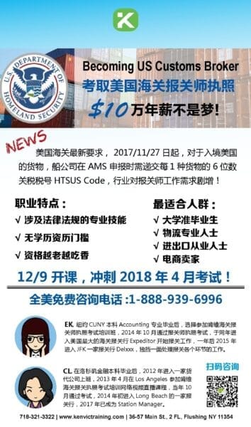最新消息:美国海关最新要求, 2017/11/27日起,对于入境美国的货物,船公司在 AMS 申报时需递交每1 […]