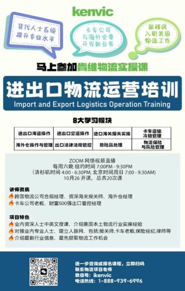 货代人士系统提升专业水平?卡车公司与海外仓要开发新业务?新移民入职美国物流工作?欢迎马上报名参加肯维物流实操课 […]