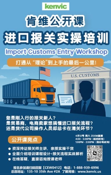 欢迎参加肯维本周六公开课: “进口海关报关实操课程介绍会 ”,11/5/2024 周六 8:00 – […]