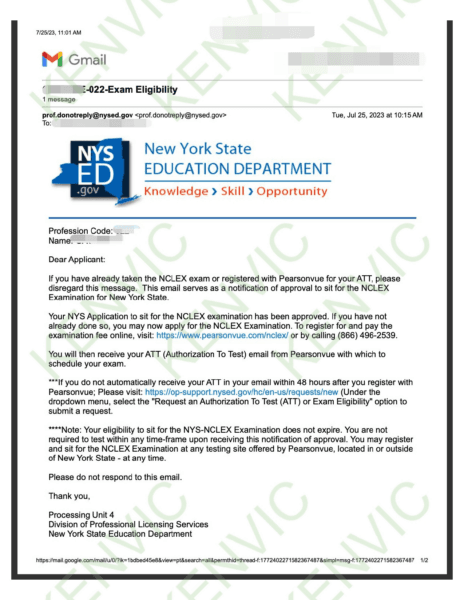 Wang同学,有中专与大专护理学历,7/29/23收到纽约州教育局学历认证通过邮件
