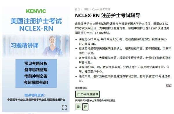 每周一四晚8点直播授课,中英文教学结合,系统解决语言障碍与文化差异。课程为期8个月,附一年回放权限与微信群答疑,助力顺利拿下美国注册护士执照。
