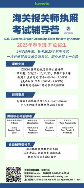 • 肯维海关报关师执照考试辅导课 5月3日开课,每周六下午4-7,备战10月份考试
