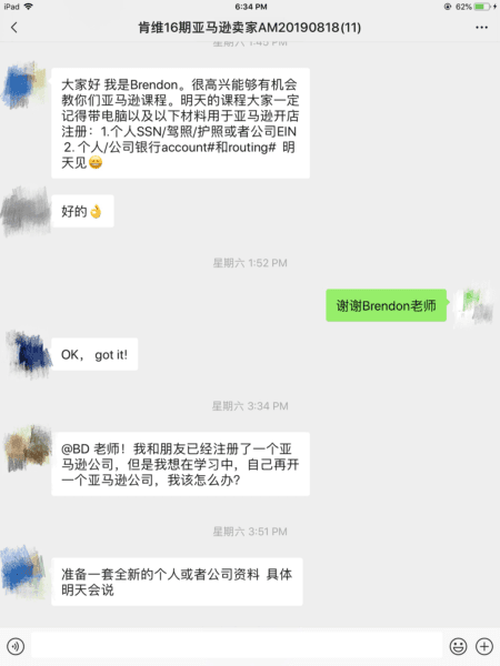 同学反映,Brendon老师上课安排紧凑,逻辑性强并采用个性化定制,一对一指导,在课堂上手把手教同学们注册账号,在课堂上就把开店步骤都完成了。零基础与对电脑操作不太熟练的同学轻松的跟上老师的节奏。这里小关老师提醒下大家,通常账号申请提交好材料都需要两天的时间审核。