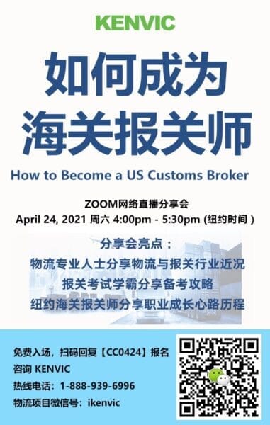 上周六4月24日肯维举办了 “如何成为美国海关报关师” 2021分享会,嘉宾对物流报关行业近况,报关师的职业发 […]